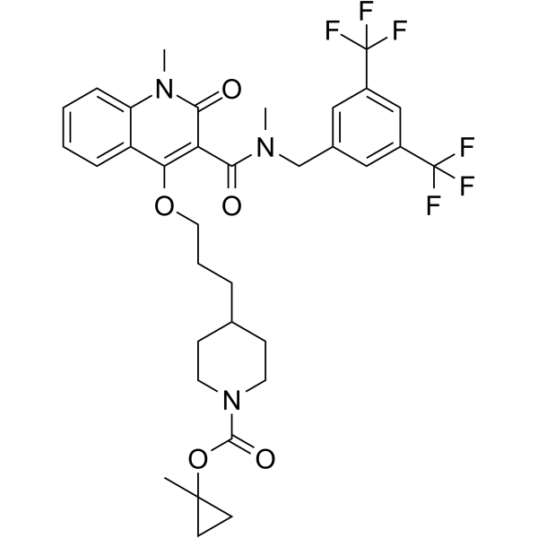 SMILESCN(Cc1cc(cc(c1)C(F)(F)F)C(F)(F)F)C(=O)c1c(OCCCC2CCN(CC2)C(=O)OC2(C)CC2)c2ccccc2n(C)c1=O