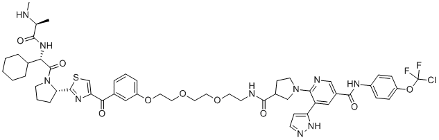 Chemical NameN-(4-(chlorodifluoromethoxy)phenyl)-6-(3-((2-(2-(2-(3-(2-((S)-1-((S)-2-cyclohexyl-2-((S)-2-(methylamino)propanamido)acetyl)pyrrolidin-2-yl)thiazole-4-carbonyl)phenoxy)ethoxy)ethoxy)ethyl)carbamoyl)pyrrolidin-1-yl)-5-(1H-pyrazol-5-yl)nicotinamide