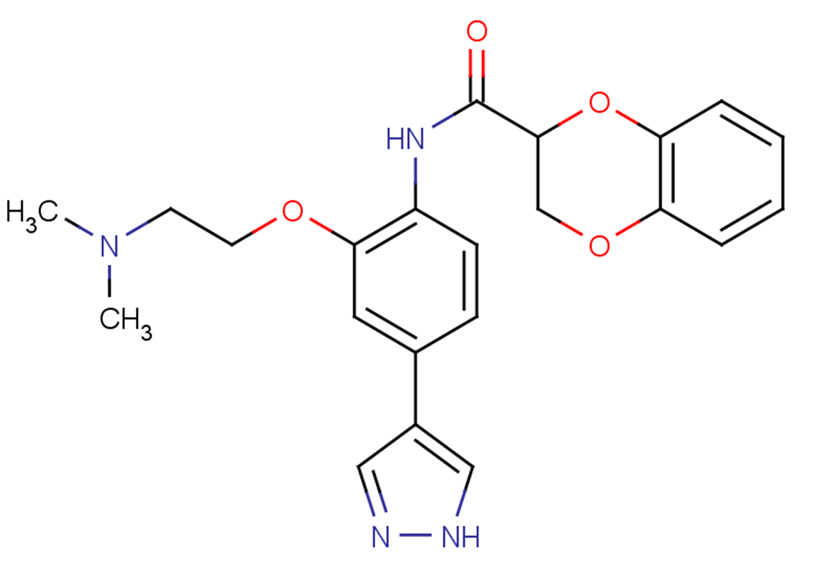 SMILESCN(C)CCOC1=C(NC(C2OC(C=CC=C3)=C3OC2)=O)C=CC(C4=CNN=C4)=C1