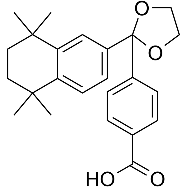 SMILESCC1(C)CCC(C)(C)c2cc(ccc12)C1(OCCO1)c1ccc(cc1)C(O)=O