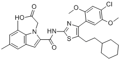Chemical Name2-(2-((4-(4-chloro-2,5-dimethoxyphenyl)-5-(2-cyclohexylethyl)thiazol-2-yl)carbamoyl)-5,7-dimethyl-1H-indol-1-yl)acetic acid