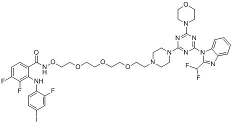 Chemical NameN-(2-(2-(2-(2-(4-(4-(2-(difluoromethyl)-1H-benzo[d]imidazol-1-yl)-6-morpholino-1,3,5-triazin-2-yl)piperazin-1-yl)ethoxy)ethoxy)ethoxy)ethoxy)-3,4-difluoro-2-((2-fluoro-4-iodophenyl)amino)benzamide