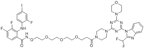 Chemical NameN-(2-(2-(2-(3-(4-(4-(2-(difluoromethyl)-1H-benzo[d]imidazol-1-yl)-6-morpholino-1,3,5-triazin-2-yl)piperazin-1-yl)-3-oxopropoxy)ethoxy)ethoxy)ethoxy)-3,4-difluoro-2-((2-fluoro-4-iodophenyl)amino)benzamide