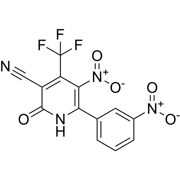 SMILESOc1nc(-c2cccc(c2)[N+]([O-])=O)c(c(c1C#N)C(F)(F)F)[N+]([O-])=O