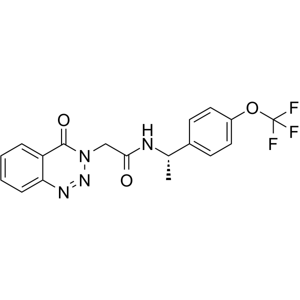 SMILESC[C@@H](c(cc1)ccc1OC(F)(F)F)NC(CN1N=Nc(cccc2)c2C1=O)=O