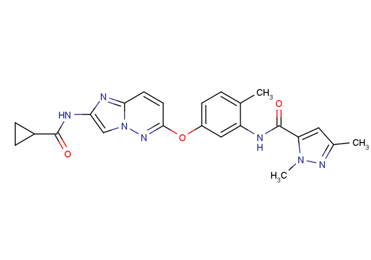 SMILESO=C(C1=CC(C)=NN1C)NC2=CC(OC3=NN4C(C=C3)=NC(NC(C5CC5)=O)=C4)=CC=C2C