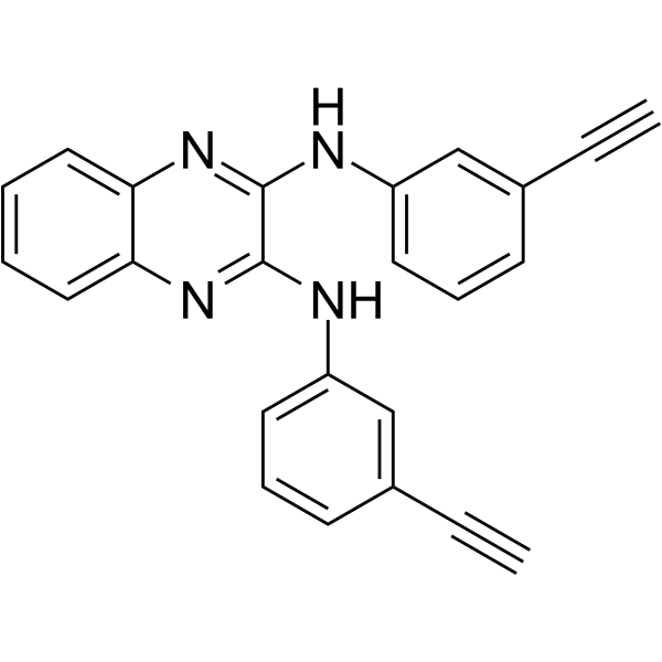 DescriptionTD52 is an orally active inhibitor of cancerous inhibitor of PP2A (CIP2A). TD52 is an Erlotinib derivative and indirectly reduced CIP2A by disturbing Elk1 binding to the CIP2A promoter.(In Vitro):TD52 (5 μM; 24 hours) significantly increases the phosphatase activity of PP2A in TNBC cells. TD52 (5 μM; 48 hours) has no obvious effects on other common RTKs, such as IGFR, PDGFR and VEGFR2. TD52 (2-10 μM; 48 hours) shows anti-proliferative ability and induces differential apoptotic effects in these cell lines. TD52 (5 μM; 48 hours) has minimal effects on p-EGFR or EGFR expression but downregulated CIP2A expression. TD52 (2.5, 5, 7.5 μM; 48 hours) time-dependently induces apoptosis accompanied with downregulating CIP2A and p-Akt.(In Vivo):In female NCr athymic nude mice, TD52 (10 mg/kg/day; oral gavage) significantly inhibited MDA-MB-468 xenograft tumour size and tumour weight and decreased the protein expressions of CIP2A and p-Akt in the three MDA-MB-468 xenograft tumours..