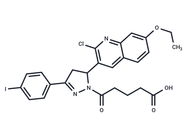 SMILESCCOc1ccc2cc(C3CC(=NN3C(=O)CCCC(O)=O)c3ccc(I)cc3)c(Cl)nc2c1