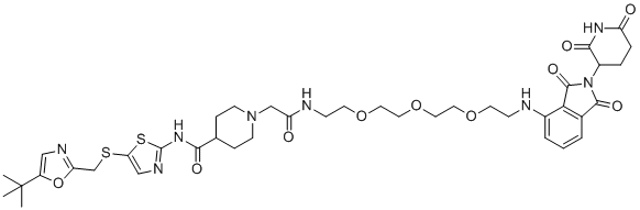 Chemical NameN-(5-(((5-(tert-butyl)oxazol-2-yl)methyl)thio)thiazol-2-yl)-1-(14-((2-(2,6-dioxopiperidin-3-yl)-1,3-dioxoisoindolin-4-yl)amino)-2-oxo-6,9,12-trioxa-3-azatetradecyl)piperidine-4-carboxamide