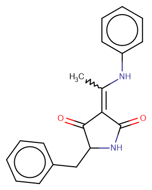 SMILESCC(Nc1ccccc1)=C1C(=O)NC(Cc2ccccc2)C1=O
