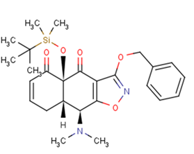 SMILESCC(C)(C)[Si](C)(C)O[C@@]12[C@@H](CC=CC1=O)[C@@H](c1c(C2=O)c(no1)OCc1ccccc1)N(C)C