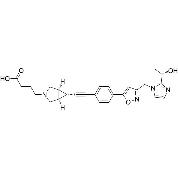 SMILESO=C(O)CCCN1C[C@@]2([H])[C@H](C#CC3=CC=C(C4=CC(CN5C=CN=C5[C@@H](O)C)=NO4)C=C3)[C@@]2([H])C1