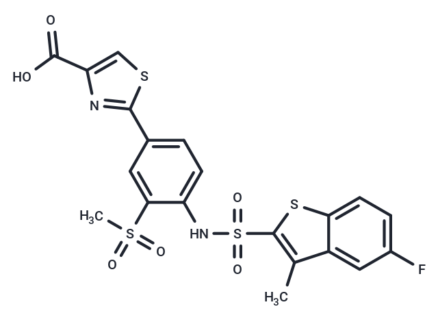 SMILESCc1c(sc2ccc(F)cc12)S(=O)(=O)Nc1ccc(cc1S(C)(=O)=O)-c1nc(cs1)C(O)=O