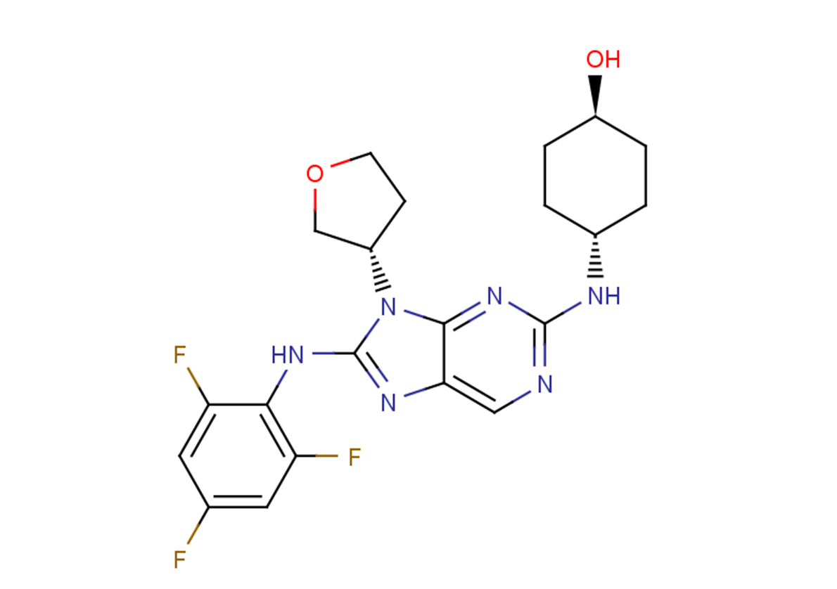 SMILESO[C@H]1CC[C@@H](CC1)NC2=NC=C3N=C(N(C3=N2)[C@@H]4COCC4)NC5=C(C=C(C=C5F)F)F