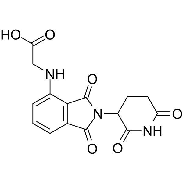 DescriptionThalidomide-NH-CH2-COOH is a synthesized E3 ligase ligand-linker conjugate containing a Thalidomide-based cereblon ligand and a linker.(In Vitro):PROTACs contain two different ligands connected by a linker; one is a ligand for an E3 ubiquitin ligase and the other is for the target protein. PROTACs exploit the intracellular ubiquitin-proteasome system to selectively degrade target proteins.