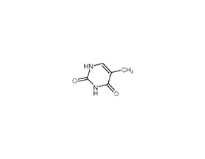 DescriptionOne of the pyrimidine bases of living matter. Derivation: Hydrolysis of deoxyribonucleic acid, from methylcyanoacetylurea by catalytic reduction. Use: Biochemical research. Thymine is a pyrimidine nucleobase. As the name implies, thymine may be derived by methylation of uracil at the 5th carbon. Thymine is found in the nucleic acid DNA. In RNA thymine is replaced with uracil in most cases. In DNA, thymine binds to adenine via two hydrogen bonds to assist in stabilizing the nucleic acid structures.