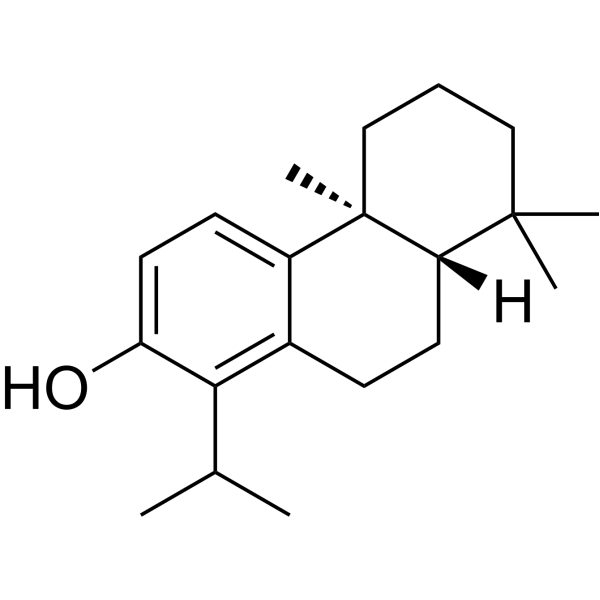 DescriptionTotarol shows antibacterial effects against several pathogenic Gram-positive bacteria, mycobacterium tuberculosis.(In Vitro):Totarol (2 μM) inhibits the proliferation of Bacillus subtilis cells and strongly induces the filamentation in B. subtilis cells. Totarol (1.5 μM) reduces the frequency of the Z-ring occurrence per micrometer of the bacterial cell length but did not affect the nucleoid frequency, suggesting that it blocks cytokinesis by inhibiting the formation of the Z-ring. Totarol perturbs the assembly dynamics of FtsZ protofilaments in the Z-ring.