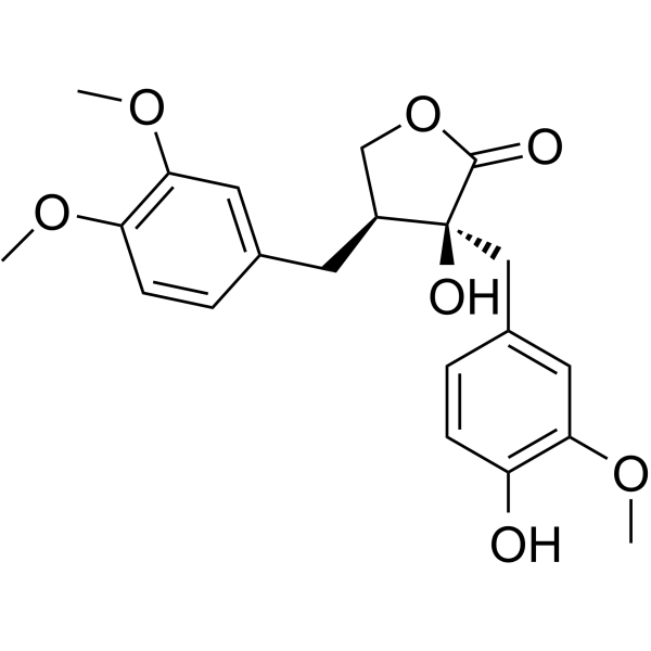 DescriptionTrachelogenin, an HCV entry inhibitor, has antiproliferative effects, and its mechanism is related to affecting the phosphorylation of key proteins in the β-Catenin signaling pathway, such as β-Catenin, c-Myc, and GSK3, in a concentration-dependent manner.Trachelogenin exhibits antiviral, anti-inflammatory, and analgesic activities, with IC50 values of 0.325 and 0.259 μg/mL in HCVcc and HCVpp models, respectively. Trachelogenin has antiviral, anti-inflammatory and analgesic activities, with IC50s of 0.325 and 0.259 μg/mL in HCVcc and HCVpp models, respectively.Trachelogenin is a compound derived from Combretum fruticosum.