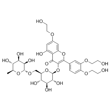 Chemical Name2-(3,4-bis(2-hydroxyethoxy)phenyl)-5-hydroxy-7-(2-hydroxyethoxy)-3-(((2S,3R,4S,5S,6R)-3,4,5-trihydroxy-6-((((2R,3R,4R,5R,6S)-3,4,5-trihydroxy-6-methyltetrahydro-2H-pyran-2-yl)oxy)methyl)tetrahydro-2H-pyran-2-yl)oxy)-4H-chromen-4-one