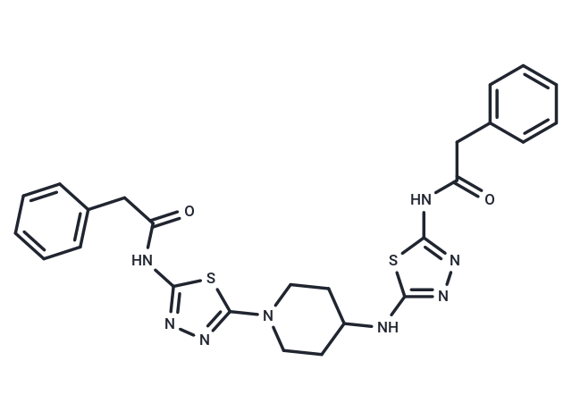 SMILESO=C(Cc1ccccc1)Nc1nnc(NC2CCN(CC2)c2nnc(NC(=O)Cc3ccccc3)s2)s1