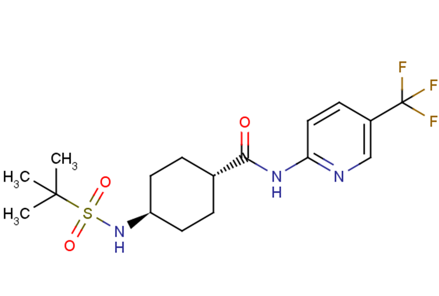SMILESFC(F)(F)C1=CN=C(NC([C@H]2CC[C@H](NS(=O)(C(C)(C)C)=O)CC2)=O)C=C1