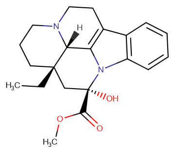 SMILESO[C@@](C1)(C(OC)=O)N2C3=C(C=CC=C3)C4=C2[C@@]([C@@]1(CC)CCC5)([H])N5CC4