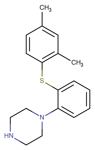 Vortioxetine (Lu AA21004) is a multimodal serotonergic agent, inhibits 5-HT1A, 5-HT1B, 5-HT3A, 5-HT7 receptor and SERT with IC50 of 15 nM, 33 nM, 3.7 nM, 19 nM and 1.6 nM, respectively.