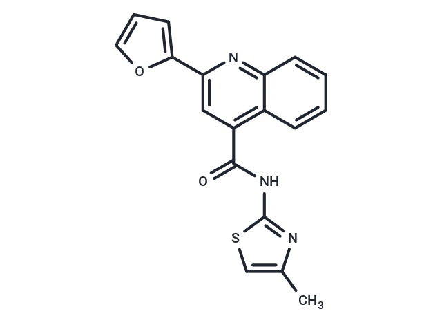 SMILESO=C(NC1=NC(=CS1)C)C=2C=C(N=C3C=CC=CC32)C=4OC=CC4