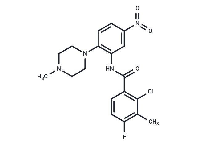 SMILESN(C(=O)C1=C(Cl)C(C)=C(F)C=C1)C2=C(C=CC(N(=O)=O)=C2)N3CCN(C)CC3
