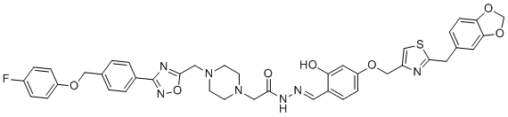 Chemical NameN'-(4-((2-(benzo[d][1,3]dioxol-5-ylmethyl)thiazol-4-yl)methoxy)-2-hydroxybenzylidene)-2-(4-((3-(4-((4-fluorophenoxy)methyl)phenyl)-1,2,4-oxadiazol-5-yl)methyl)piperazin-1-yl)acetohydrazide