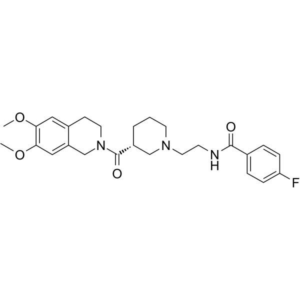 SMILESC(=O)(N1CC=2C(=CC(OC)=C(OC)C2)CC1)[C@H]3CN(CCNC(=O)C4=CC=C(F)C=C4)CCC3