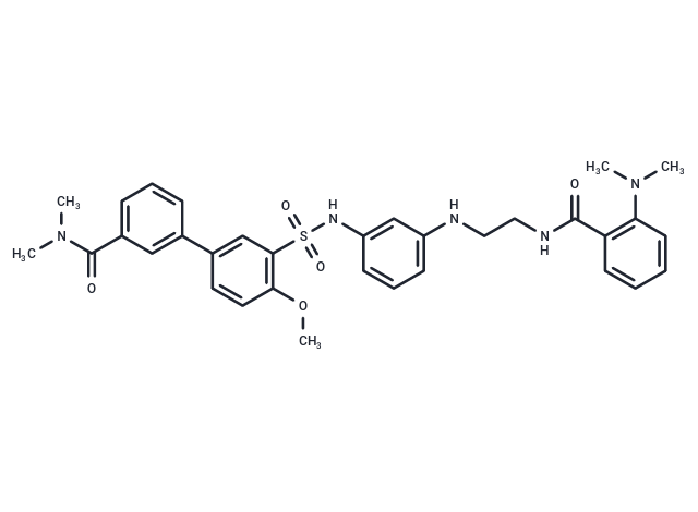 SMILESS(NC1=CC(NCCNC(=O)C2=C(N(C)C)C=CC=C2)=CC=C1)(=O)(=O)C3=C(OC)C=CC(=C3)C4=CC(C(N(C)C)=O)=CC=C4