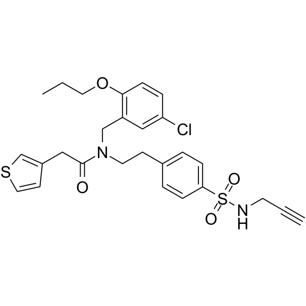 SMILESCCCOc1ccc(Cl)cc1CN(CCc1ccc(cc1)S(=O)(=O)NCC#C)C(=O)Cc1ccsc1