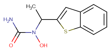 DescriptionZileuton (A-64077) is a selective and potent 5-LO inhibitor, and thus inhibits leukotrienes (LTB4, LTC4, LTD4, and LTE4) formation.(In Vitro):In anti-CD3-treated cells, IL-2 decreases in zileuton-treated and untreated cells with increasing incubation time. Zileuton likely reduces IL-2 levels by inhibiting 5-lipoxygenase, hence leukotriene B4 production, an IL-2 inducer.(In Vivo):In zileuton (5 mg/kg, p.o.) treated I/R rat, the effect of zileuton to decrease NF-κB expression does not change significantly in the presence of COX inhibitors, and the group reveals significantly lower level of NF-κB staining. Zileuton (5 mg/kg, p.o.) treatment given to I/R rats decreases apoptotic index significantly. Zileuton has no significant effect on increased serum TNF-α levels in I/R group. Zileuton (1,200 mg/kg) inhibits the polyp formation in APCΔ468 colon and small intestine. Zileuton treatment inhibits the proliferation rates of non epithelial cells in polyps, and increases the apoptosis rates in polyps in rat. There is significant increase in the number of apoptotic cells in the Zileuton-treated cells both in small intestine and in the colon. The reduced proliferation rate may significantly contribute to the reduction of polyposis in both the small intestine and colon of Zileuton-fed APCΔ468 mice.