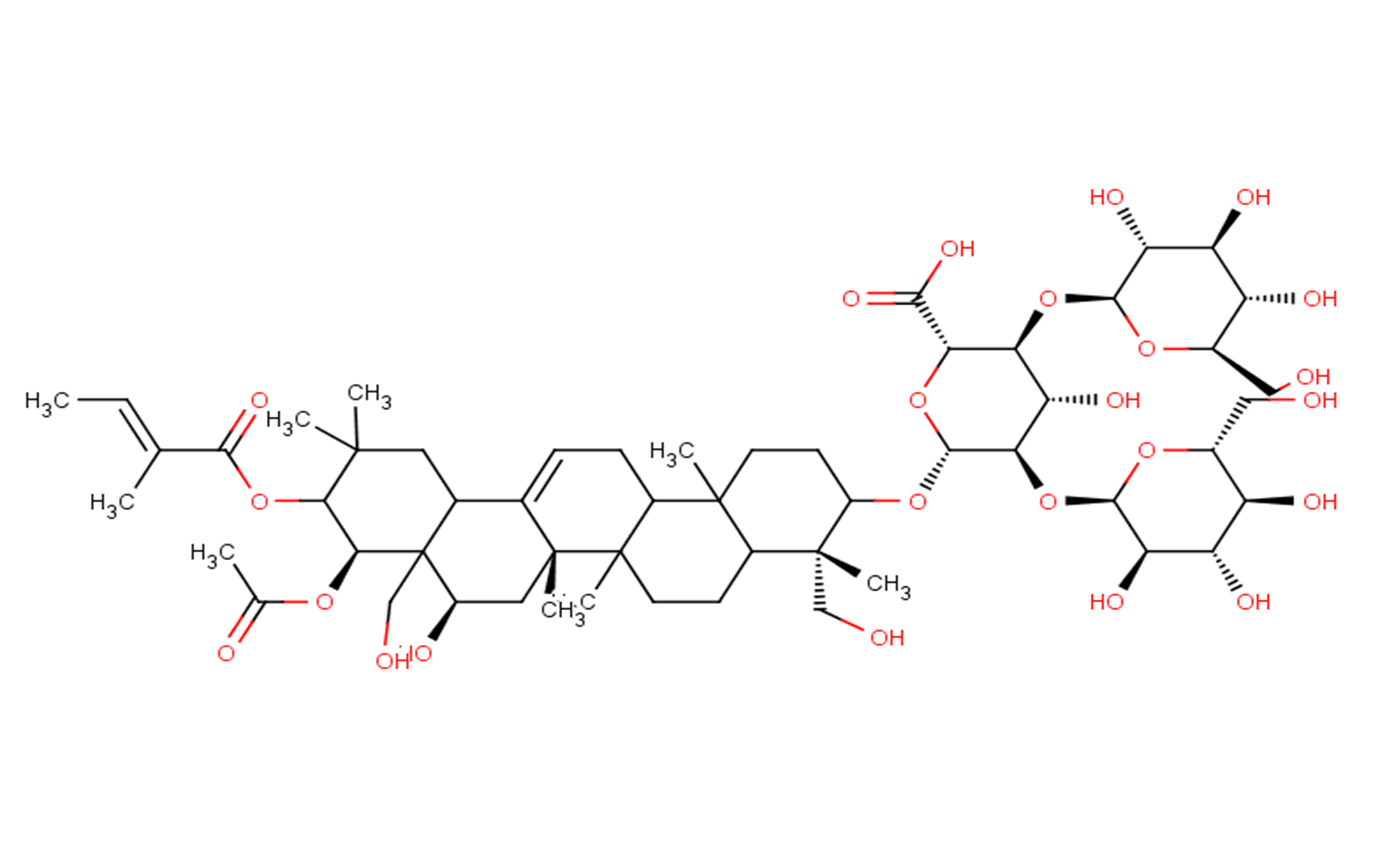 SMILESC/C=C(\C)/C(=O)OC1[C@@H](C2([C@@H](C[C@@]3(C(=CCC4C3(CCC5C4(CCC([C@]5(C)CO)O[C@H]6[C@@H]([C@H]([C@@H]([C@H](O6)C(=O)O)O[C@H]7[C@@H]([C@H]([C@@H]([C@H](O7)CO)O)O)O)O)O[C@@H]8[C@@H]([C@H]([C@@H]([C@H](O8)CO)O)O)O)C)C)C2CC1(C)C)C)O)CO)OC(=O)C