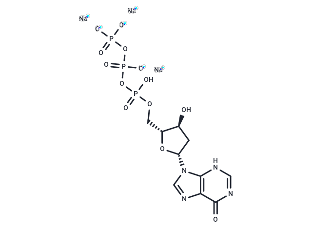 SMILESO=C1C2=C(NC=N1)N([C@@H]3O[C@@H]([C@H](C3)O)COP(OP(OP([O-])([O-])=O)([O-])=O)(O)=O)C=N2.[Na+].[Na+].[Na+]