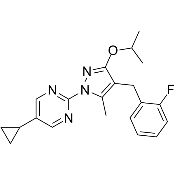 SMILESCC(C)Oc1nn(c(C)c1Cc1ccccc1F)-c1ncc(cn1)C1CC1